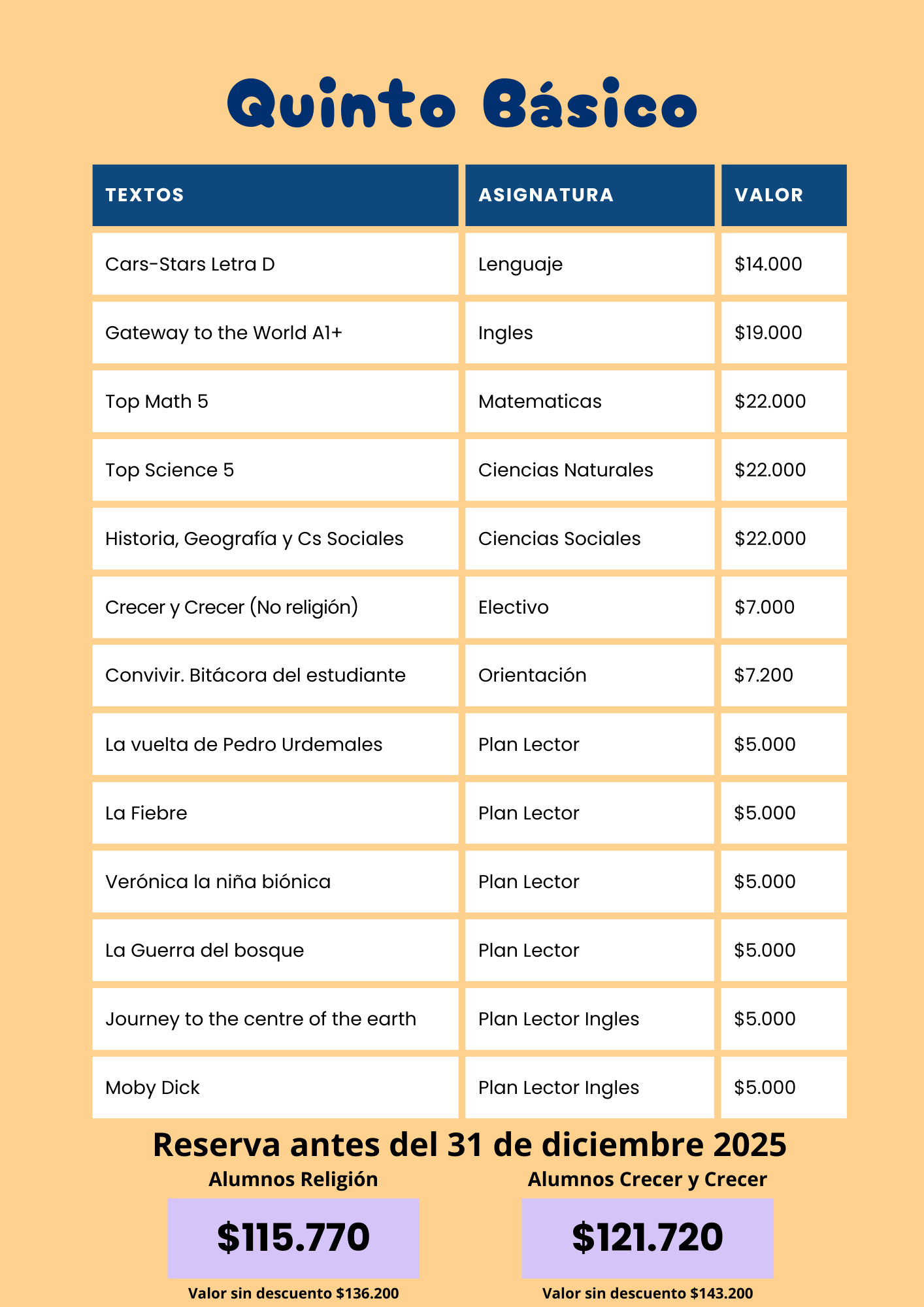 Pack Textos 5° Básico — Colegio San Joaquín (2026)