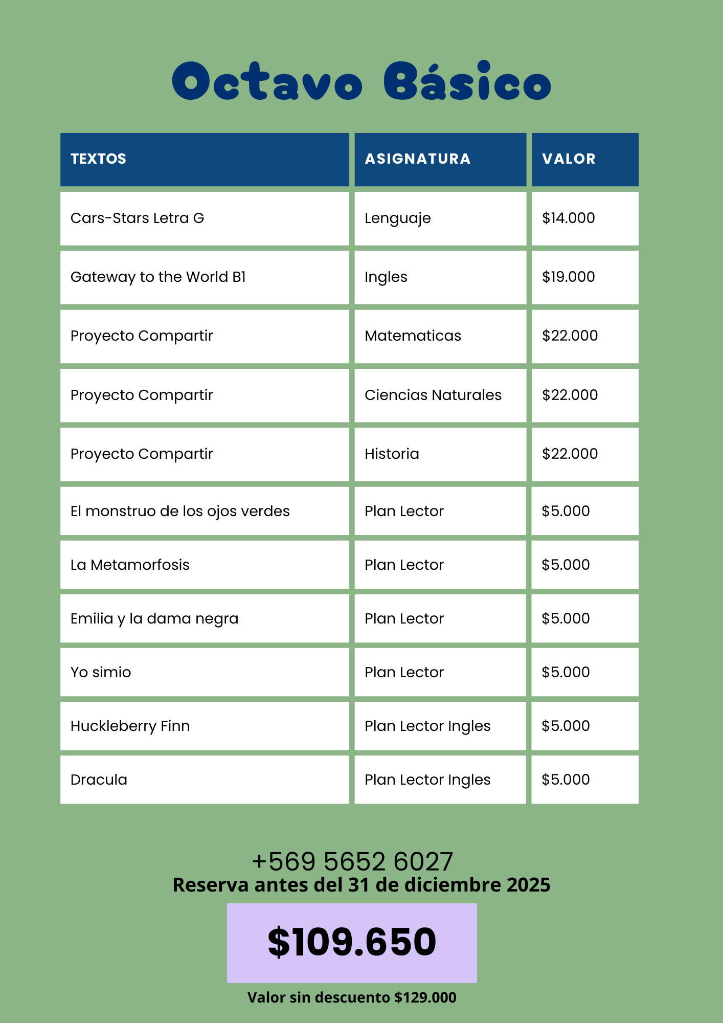 Pack Textos 8° Básico — Colegio San Joaquín (2026)